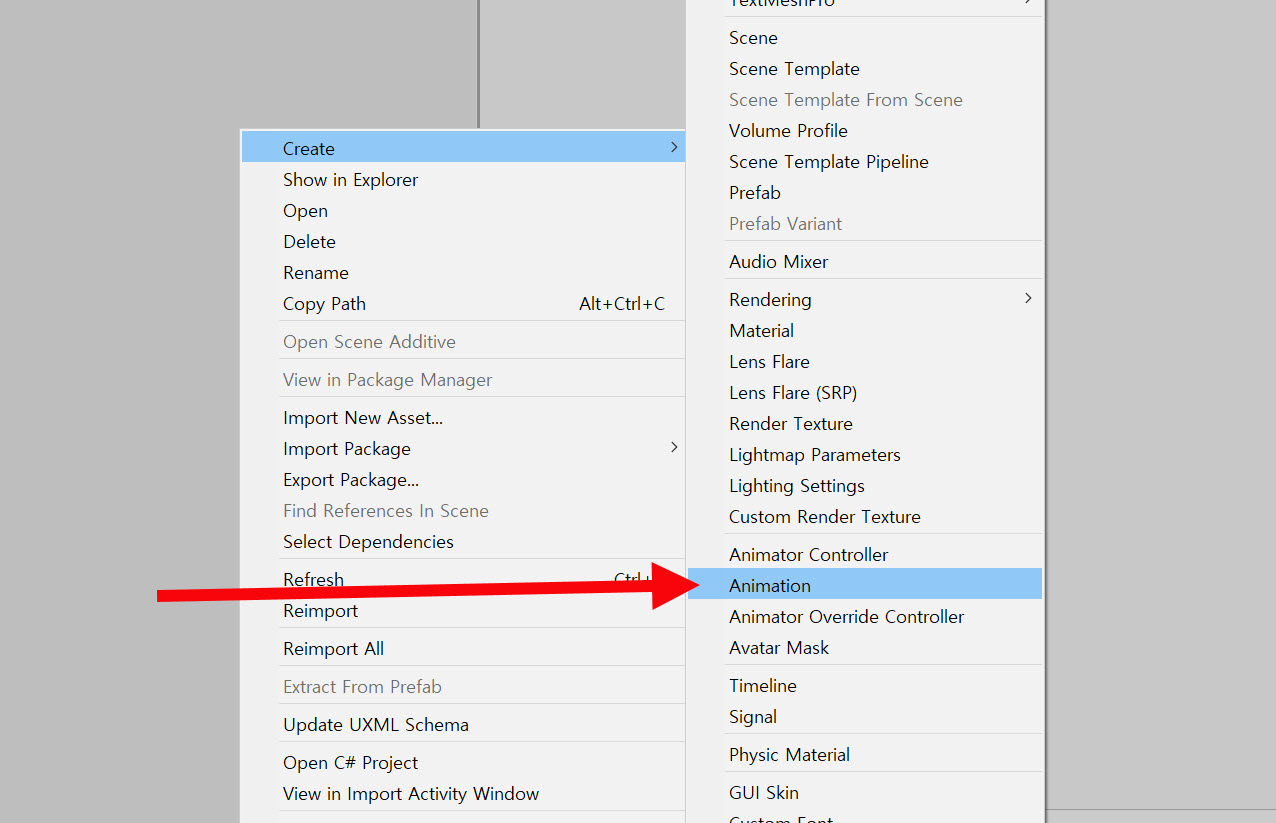 2)애니메이션(Animation)을 생성합니다. 키프레임이 존재하지않는 애니메이션으로 준비합니다.