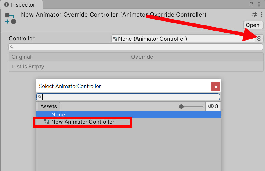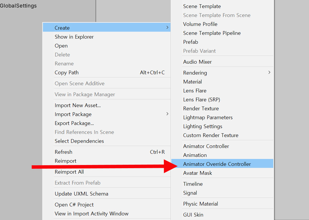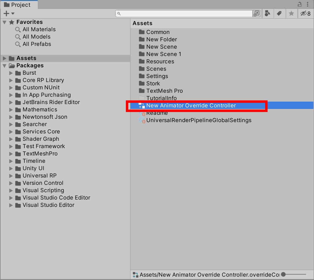 9)애니메이터 오버라이드 컨트롤러를 생성합니다(Animator Override Controller)