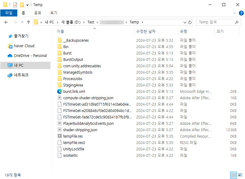 유니티(Unity) 프로젝트의 Temp 폴더 확인하기