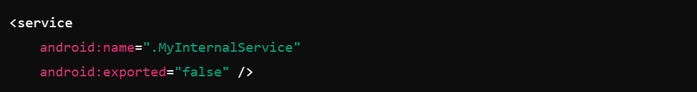 아래 예에서 MyInternalService는 동일한 앱 내에서만 접근할 수 있으며 외부 앱에서 접근할 수 없습니다.