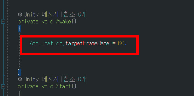 (Application.targetFrameRate = 60; 또는 Application.targetFrameRate = 30;)