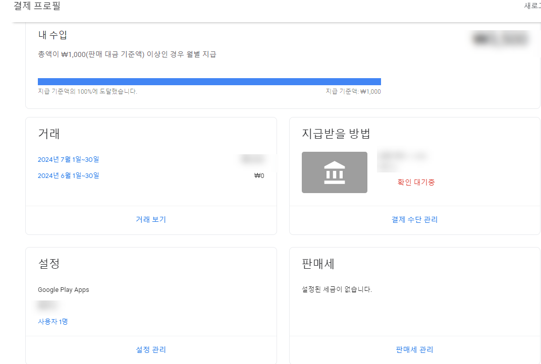 | 구글 플레이 콘솔(Google Play Console) 결제 프로필에서 결제 수단 추가하기(은행 계좌 추가, 은행 계좌 확인) (0) | 2024.08.02 |