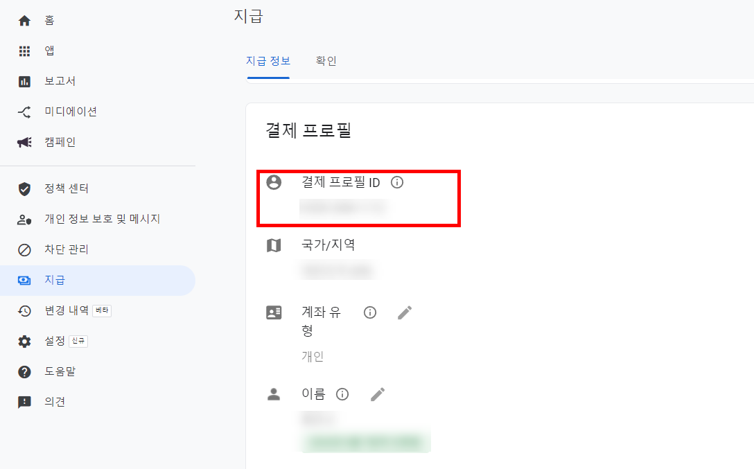 구글애드몹(Google AdMob)에서 결제 프로필 ID 확인하기