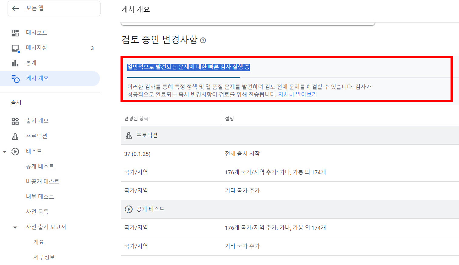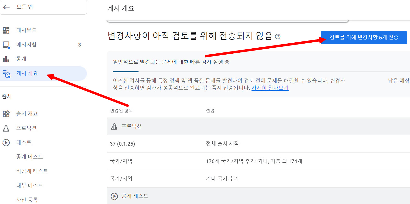 13)변경사항을 전송하면 구글에서 검토를 진행합니다.