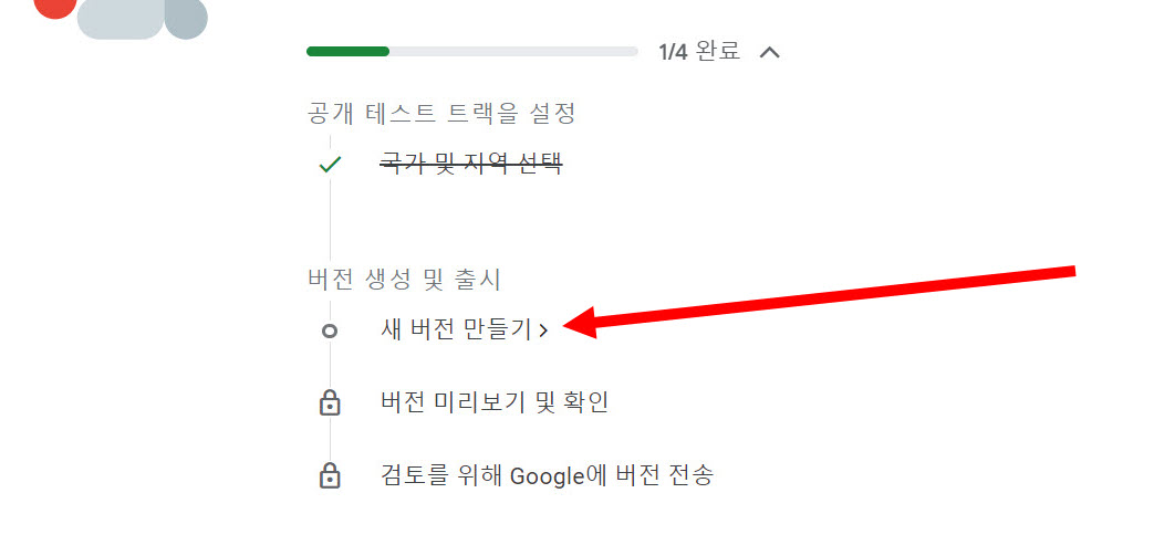 (국가 및 지역선택, 새 버전 만들기, 버전 미리보기 및 확인, 검토를위해 구글에 버전 전송)