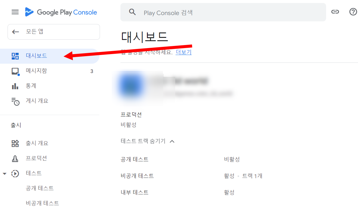 4)구글 플레이 콘솔에서 대시보드로 이동합니다.