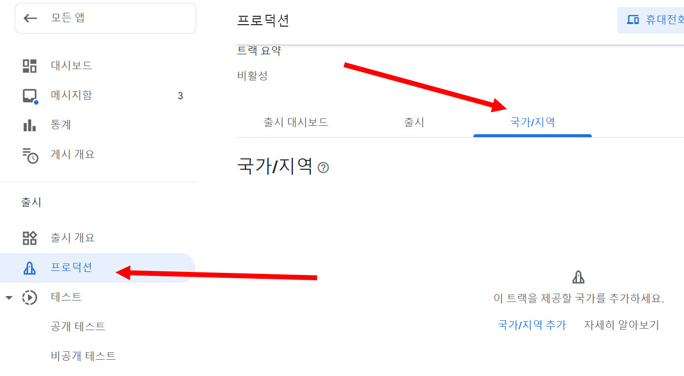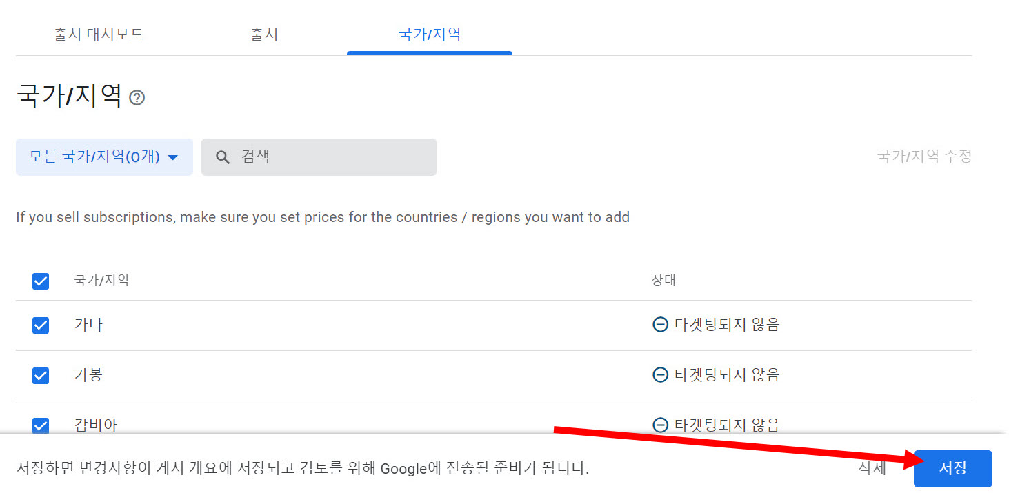 7)프로덕션의 국가/지역에서 출시 국가를 선택하고 저장합니다.