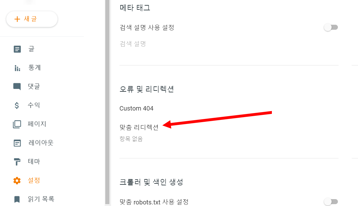 12)오류 및 리디렉션의 맞춤 리디렉션을 클릭합니다.