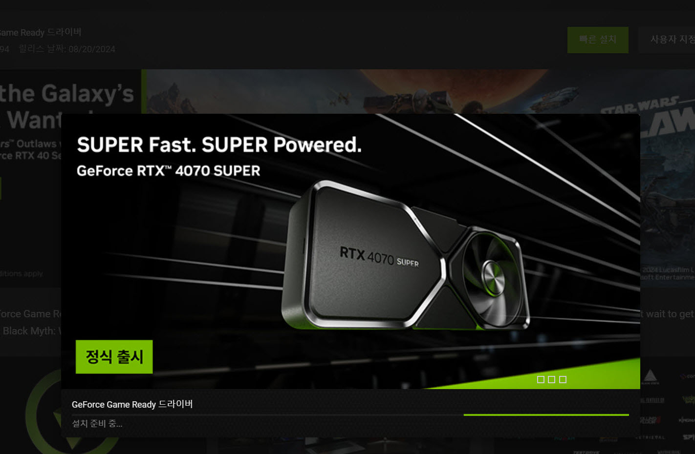 3)빠른 설치를 클릭하면 다운로드한 드라이버를 설치합니다.