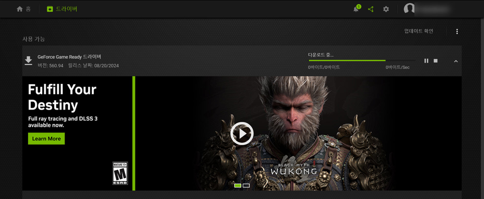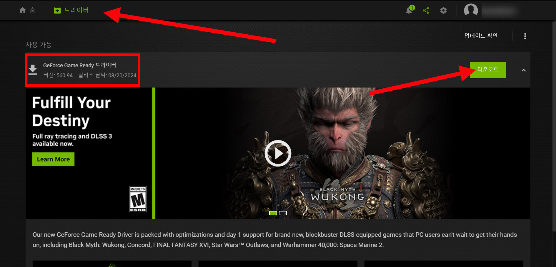 엔비디아 지포스(NVDIA GeForce) Experience에서 그래픽 드라이버 버전 확인 및 업데이트하기