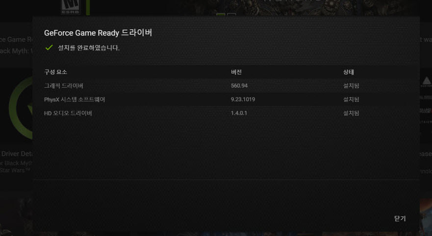 4)그래픽 드라이버를 설치 완료 및 업데이트한것을 확인할수있습니다.
