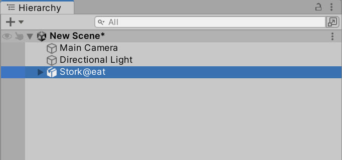 7)모델을 씬에 추가하면 게임 오브젝트는 애니메이터(Animator) 컴포넌트를 포함하며 애니메이터 컨트롤러(Animator Controller), 아바타(Avatar)등을 설정하여 메카님 애니메이션 시스템의 다양한 기능들을 사용할수있습니다.