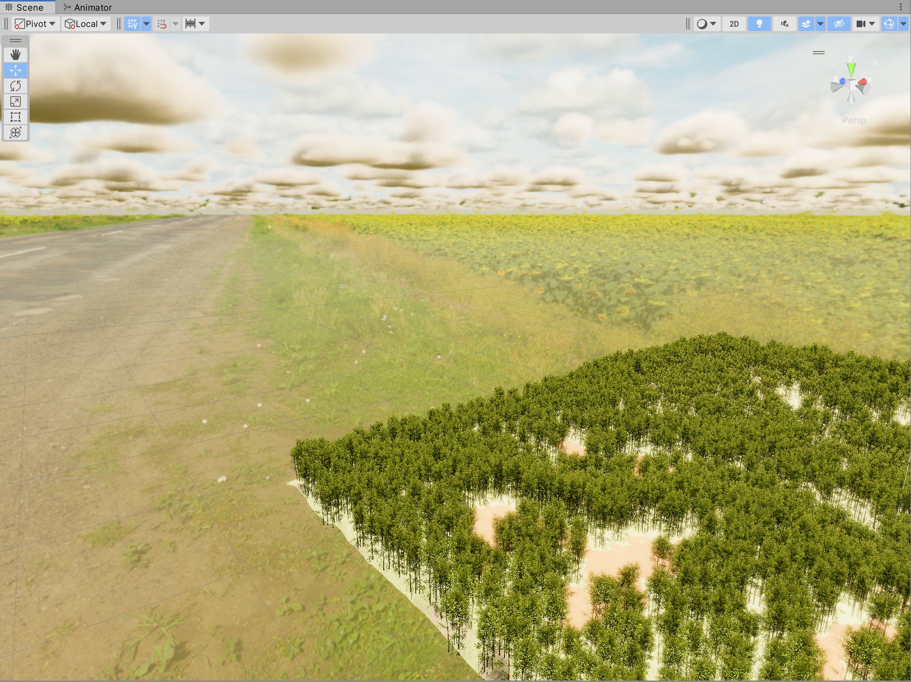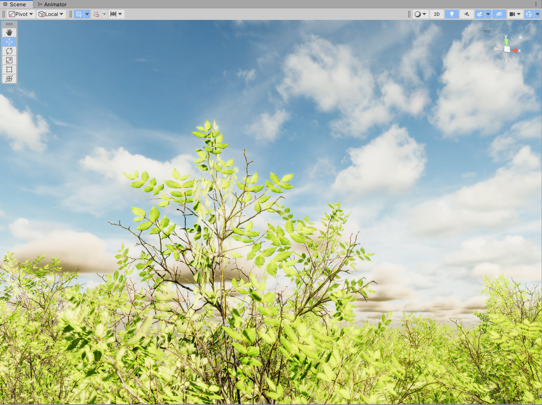 2)터레인의 나무 또는 잔디 오브젝트를 확인합니다. 일반적으로 이펙트의 애니메이션은 런타임에서 확인할수있습니다.