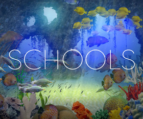물고기 무리 수영 제어, 사용자 정의 가능한 수영 동작, 40종의 물고기 및 해양 포유류, 7개의 수중 장면, 사용자 정의 물 효과, 산호, 식물, 기타 바다요소 이미지 라이브러리