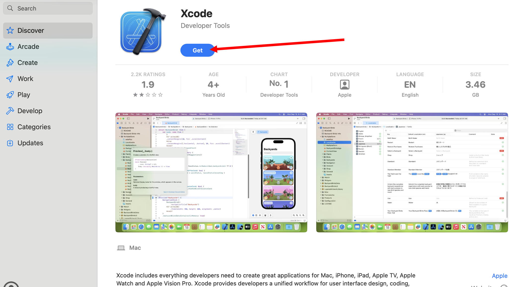 3)앱스토어 또는 사파리 브라우저에서 Xcode를 다운로드 및 설치합니다.