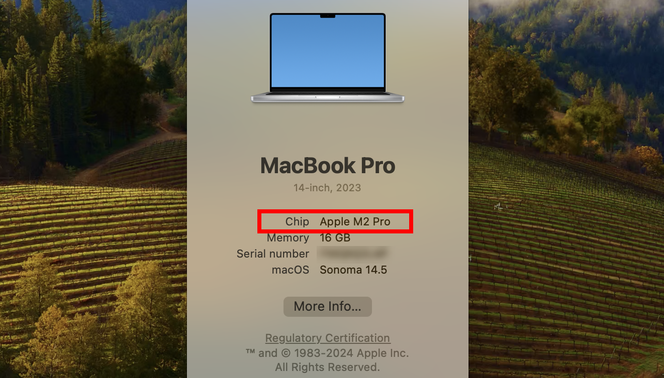7)이 맥에 관하여(About This Mac)에서 현재 맥에 탑재한 칩(Chip)이 Apple M2 Pro인것을 확인할수있습니다(Apple Silicon)