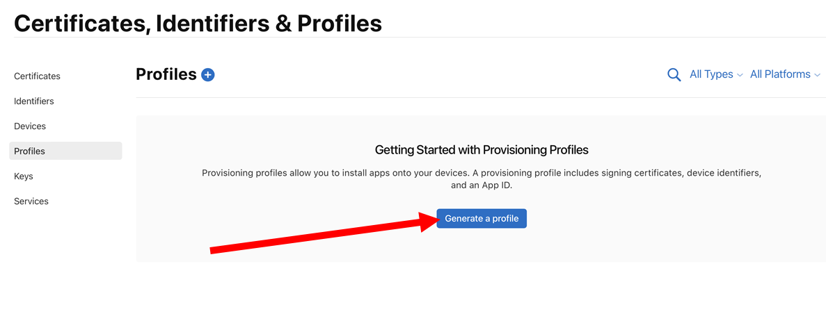 generate a profile를 선택하고 프로파일 만들기를 시작합니다.