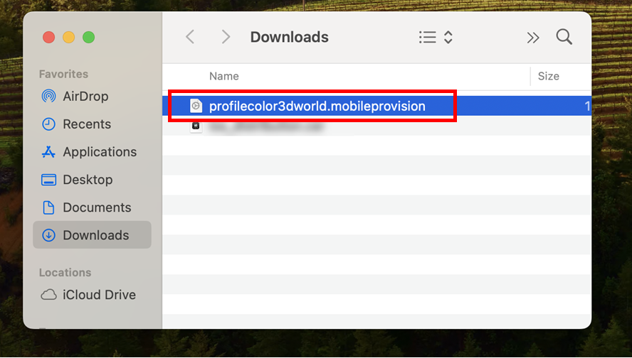 8)다운로드한 파일(.mobileprovision)을 더블클릭하면 프로비저닝 프로파일를 설치합니다(macOS가 자동으로 ~/Library/MobileDevice/Provisioning Profiles 폴더에 프로파일을 복사하고 설치)