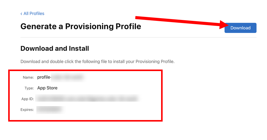 7)생성한 프로파일을 확인하고 다운로드합니다.