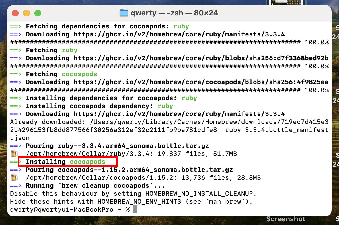 맥(mac) 컴퓨터에서 Homebrew를 사용하여 코코아팟(CocoaPods) 설치하기