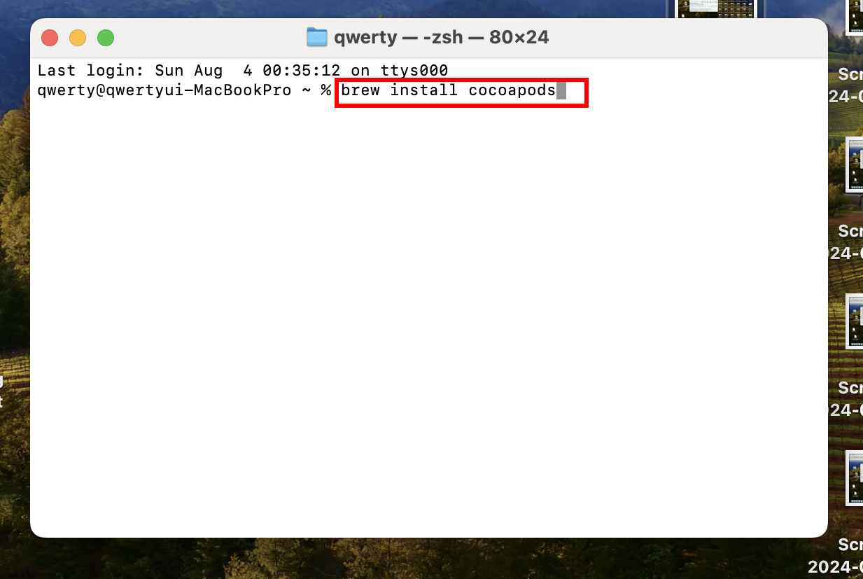 5)터미널에서 다음을 입력하면 코코아팟(Cocoapods)설치를 시작합니다.