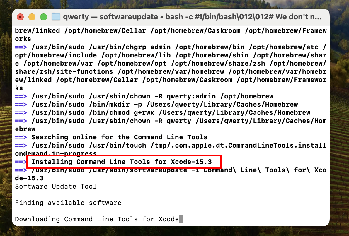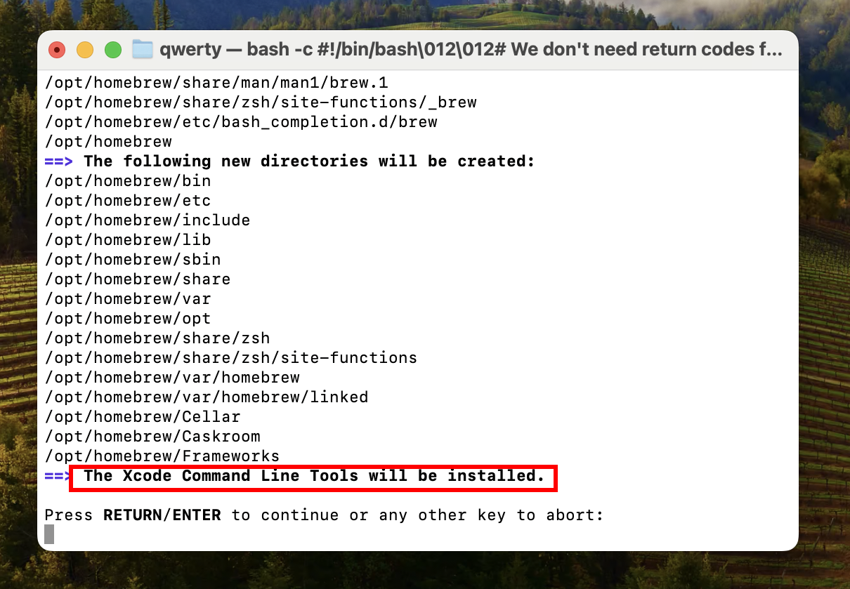 The Xcode Command Line Tools will be installed.