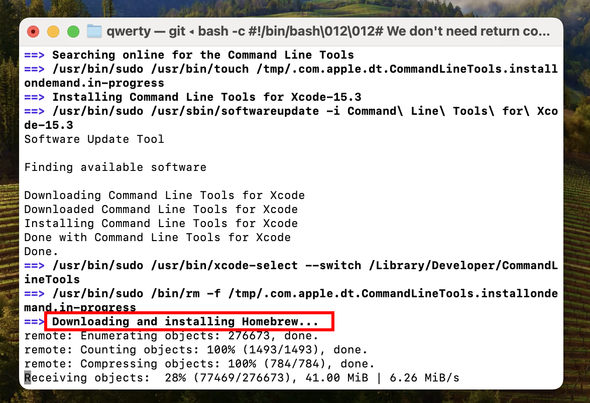 downloading and installing Homebrew