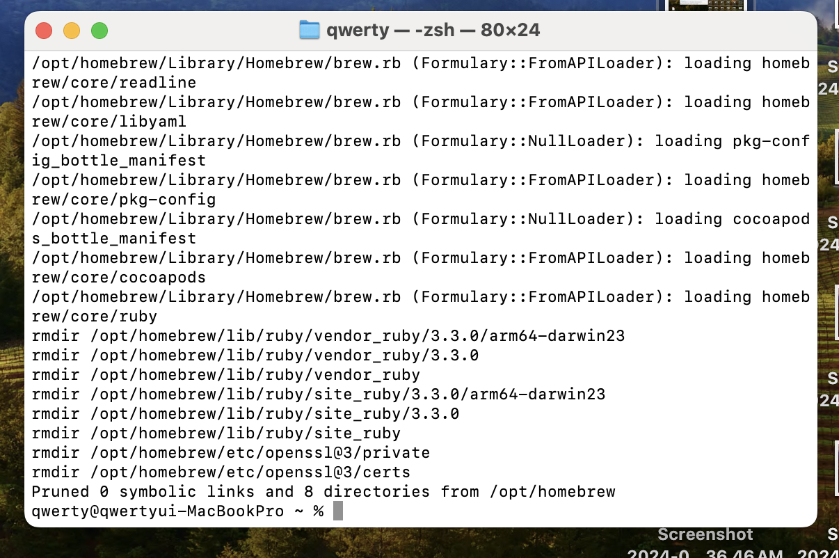 다음을 입력하여 설치된 패키지와 캐시된 파일들을 정리하고 Cocoapods 설치를 진행합니다.