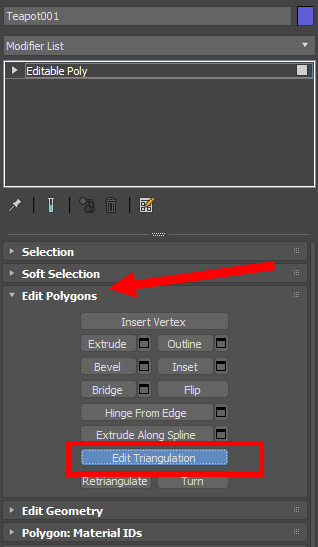 6)edit polygons에서 edit traingulation을 활성화합니다.