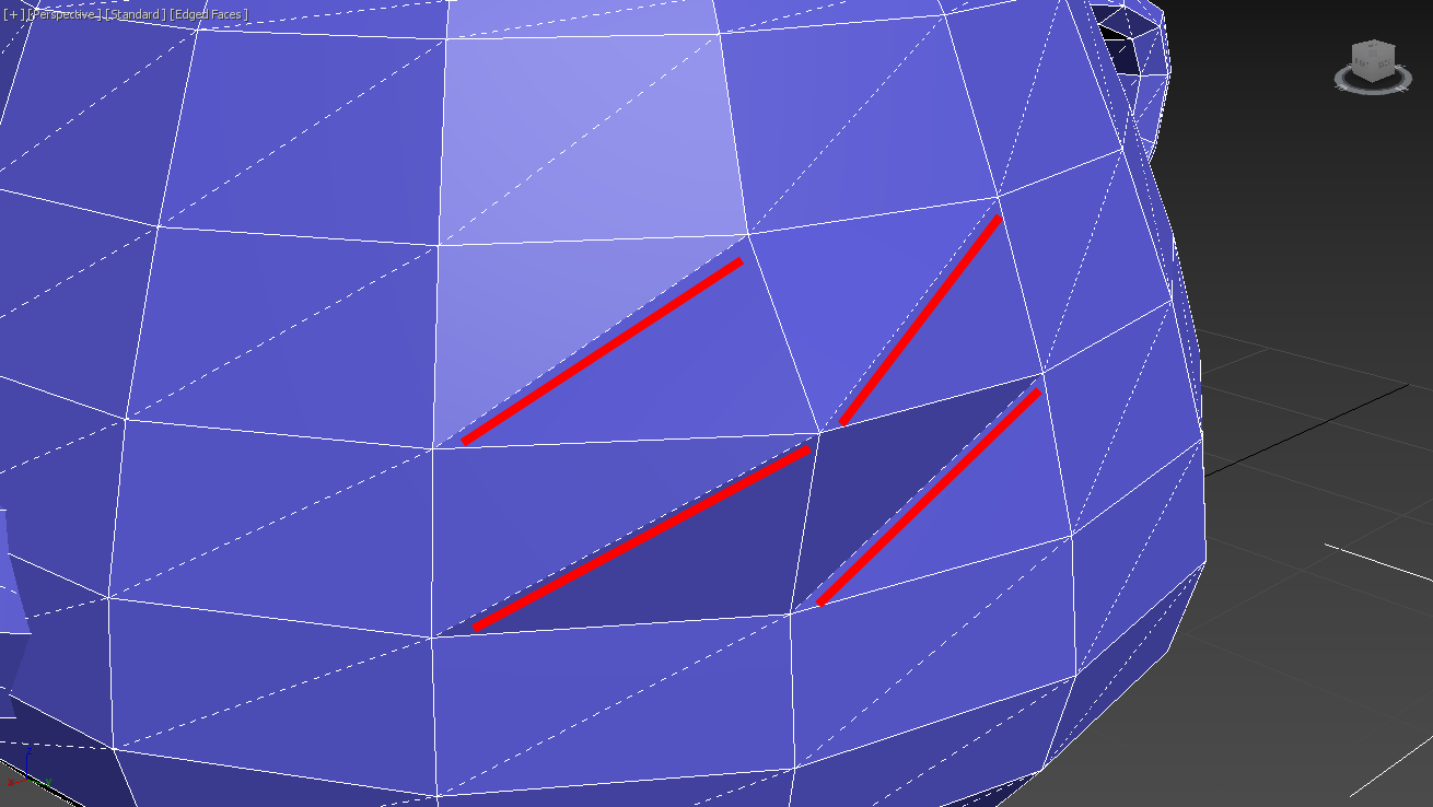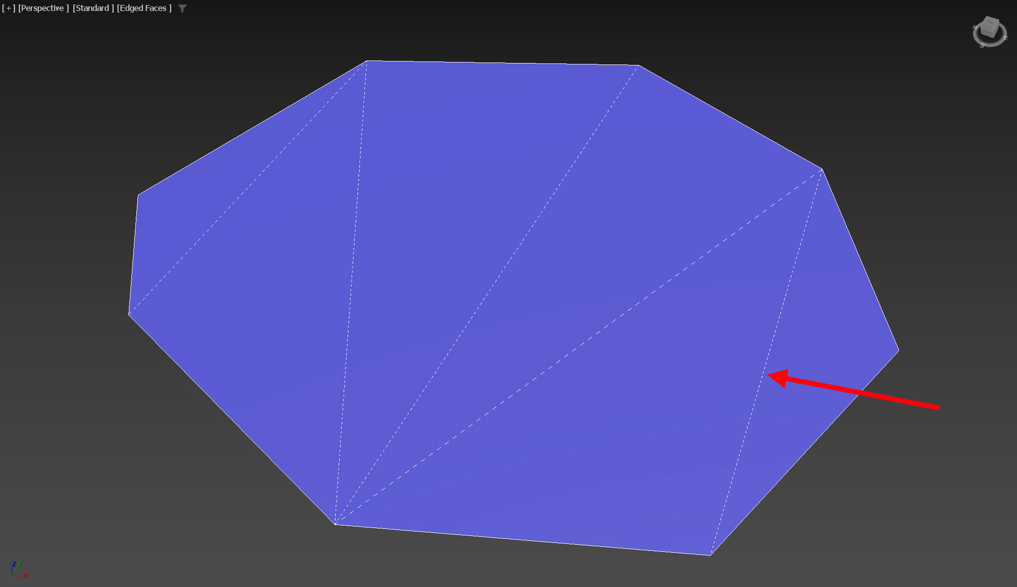 폴리곤을 선택하고 Retriangulate를 클릭하면 맥스가 해당 다각형에 대해 자동으로 최적의 삼각형 분할을 수행합니다.
