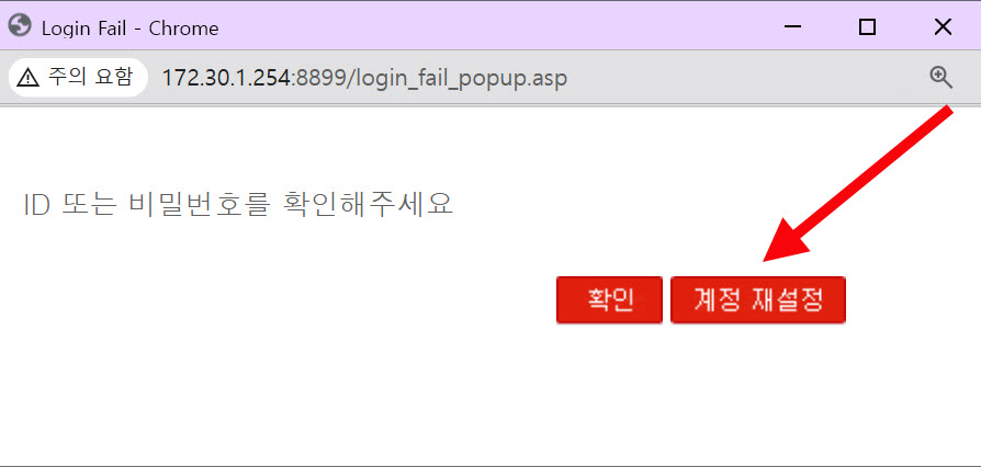 4)아이디 또는 비밀번호를 잘못 입력한것을 확인할수있습니다. 계정 재설정을 선택합니다.