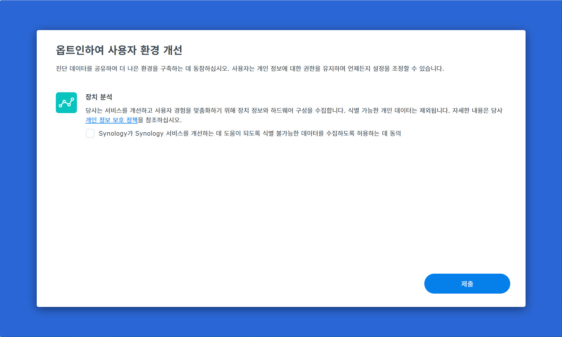 8)옵트인 사용자 환경 개선 옵션을 선택하고 제출을 클릭합니다.