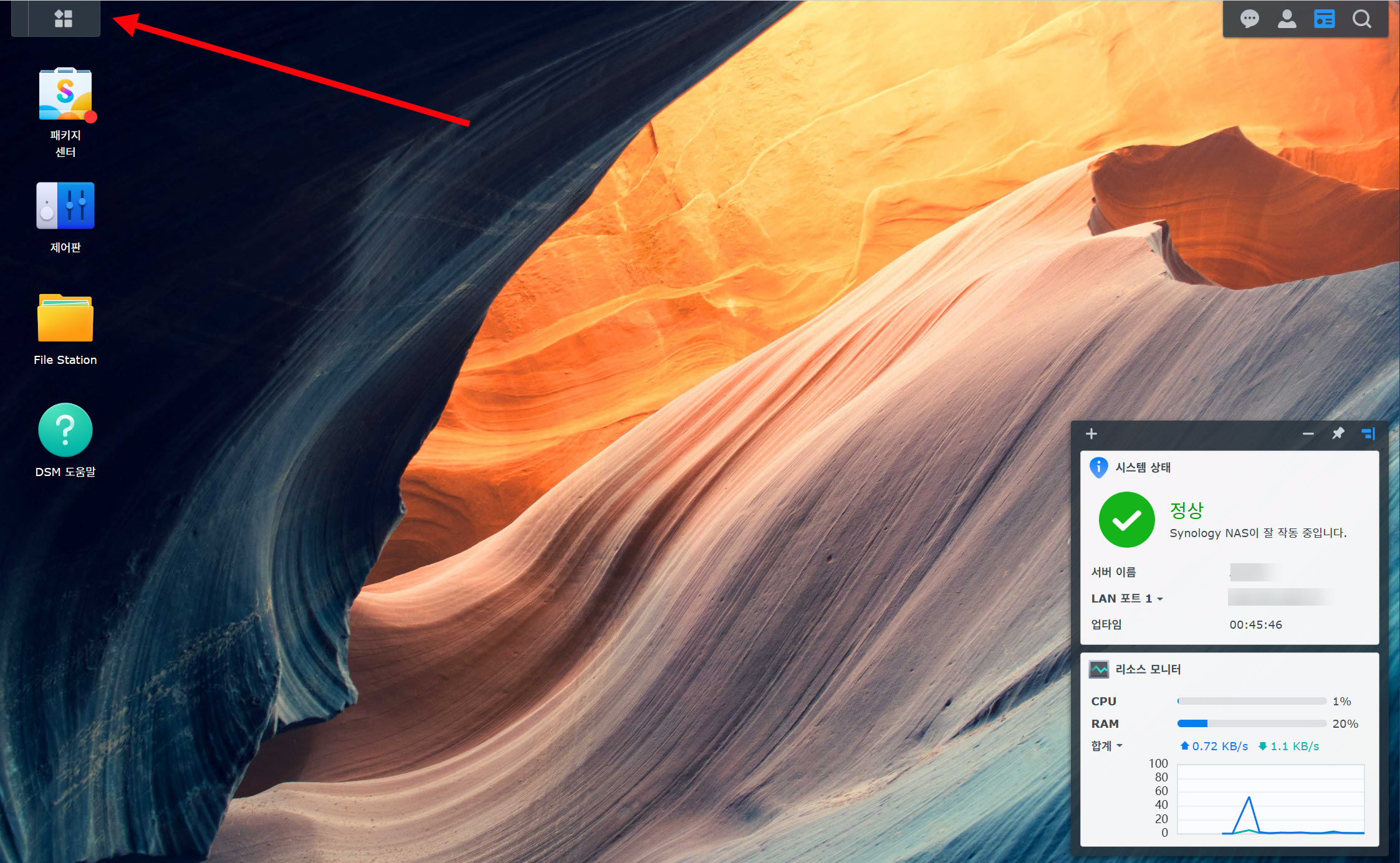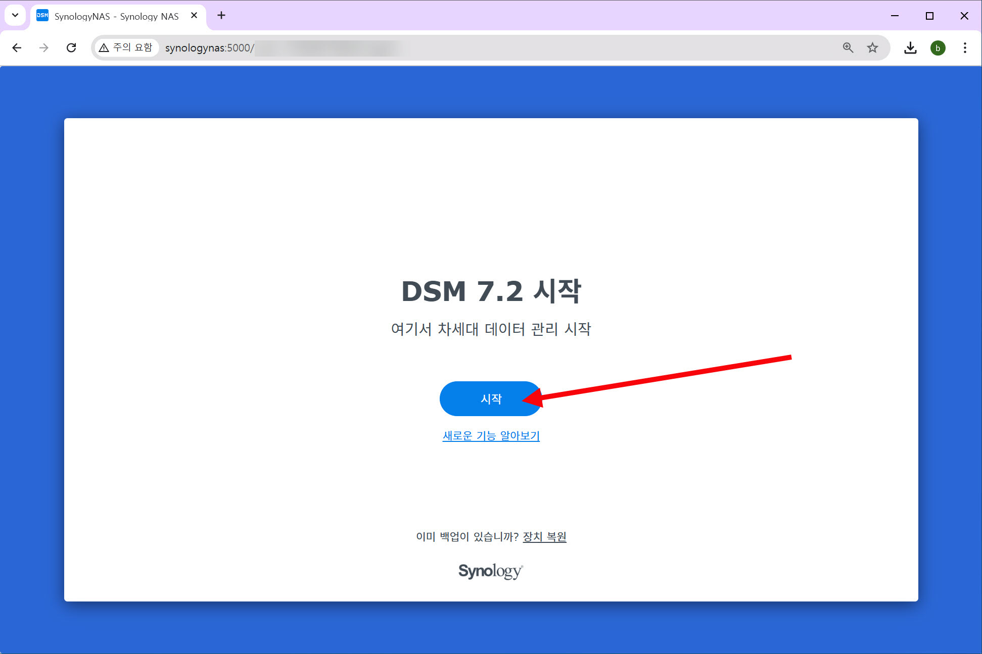 4)DSM 설치를 완료하면 DSM을 시작할수있습니다. 시작을 클릭합니다.