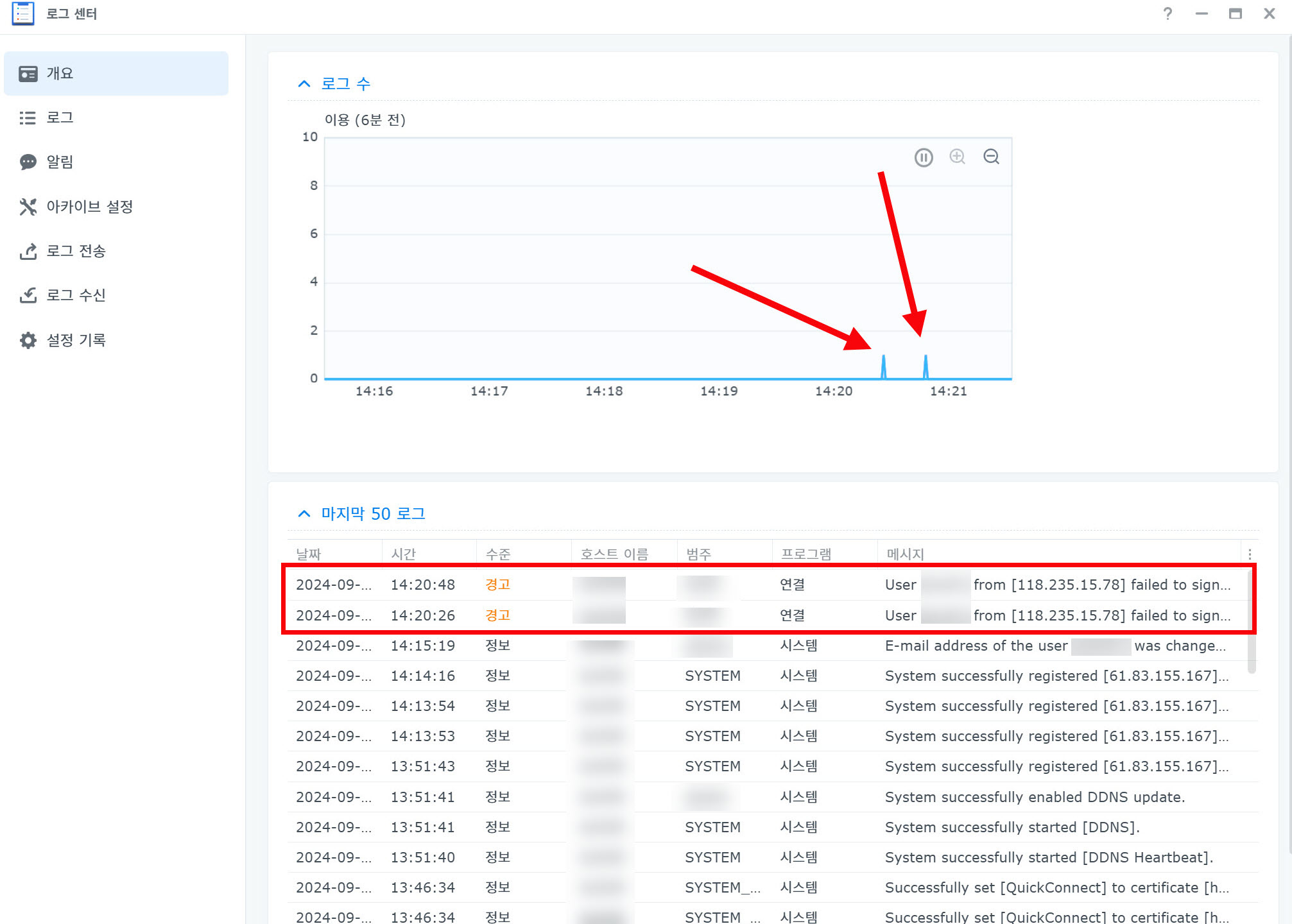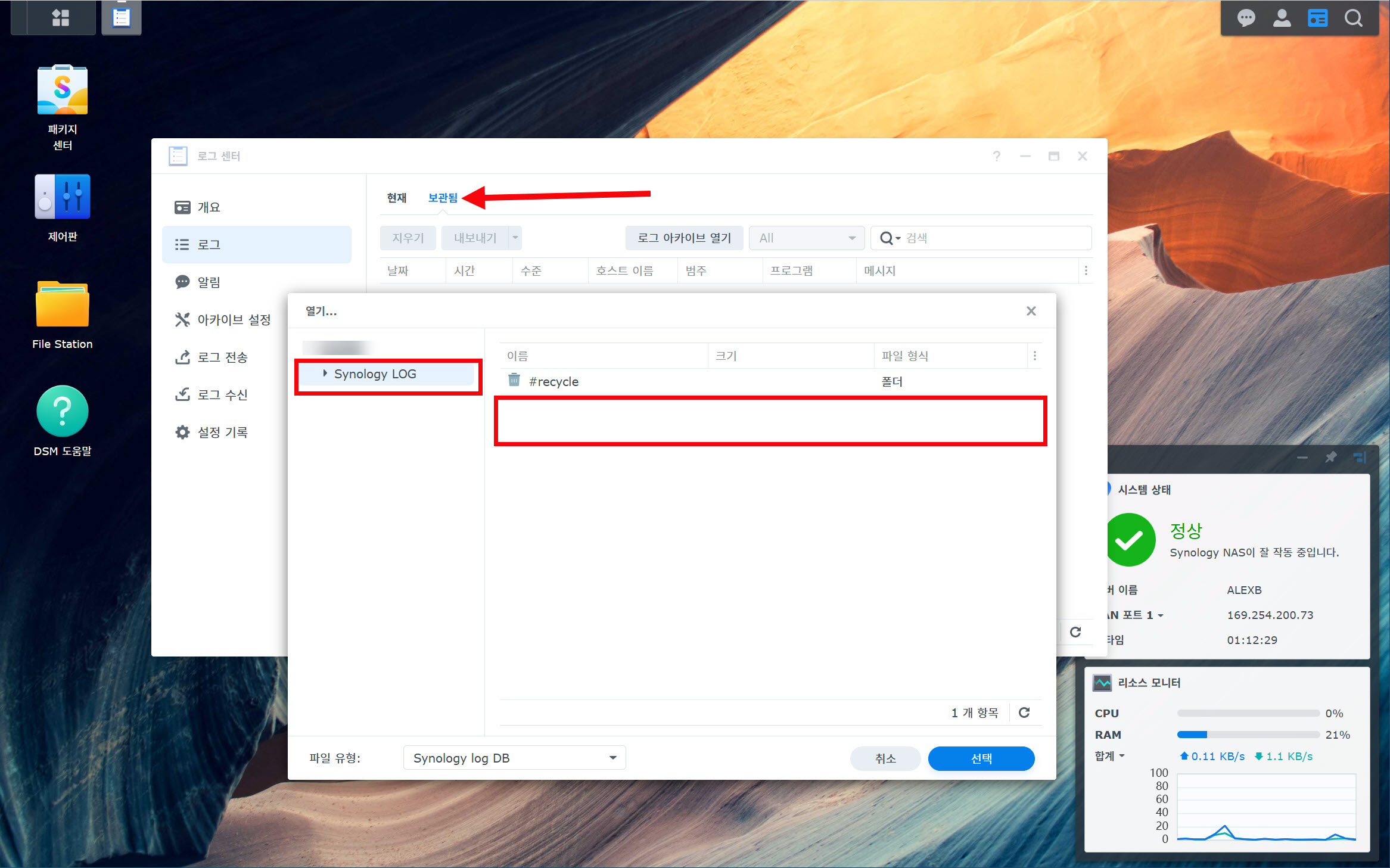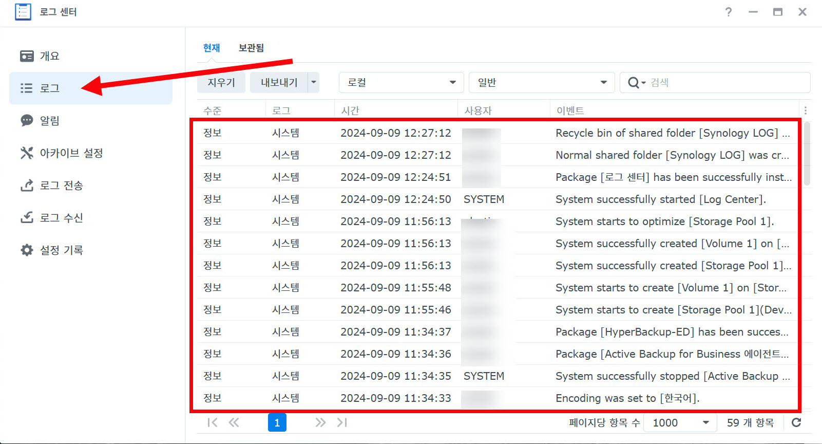 시놀로지 나스(Synology NAS) - 로그 센터에서 이벤트 모니터링하기(DSM 7.2)