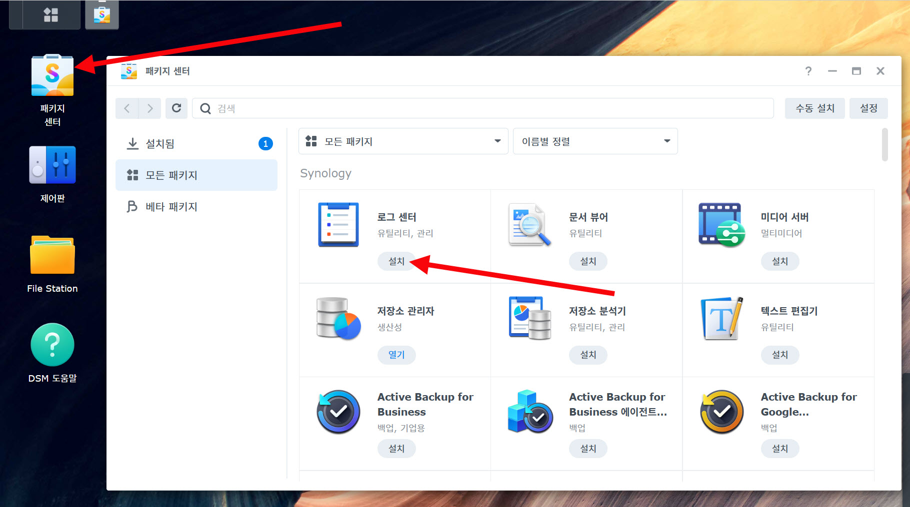 1)패키지 센터에서 로그 센터 패키지를 설치합니다.