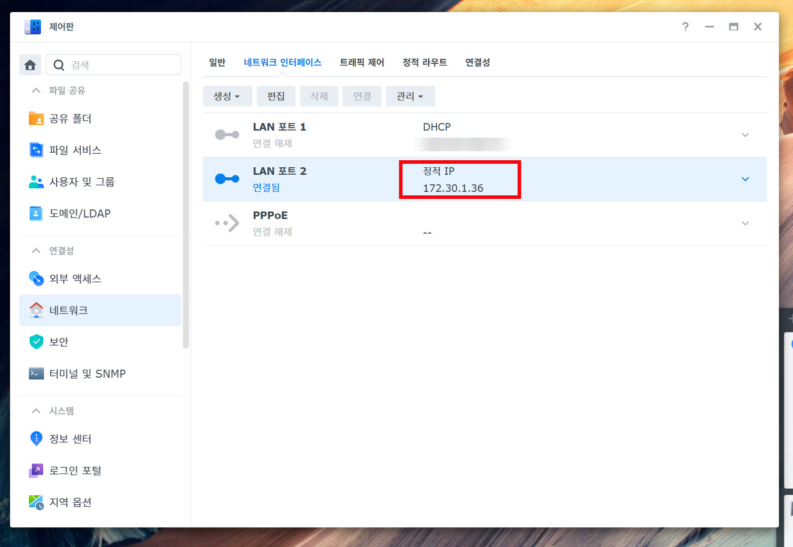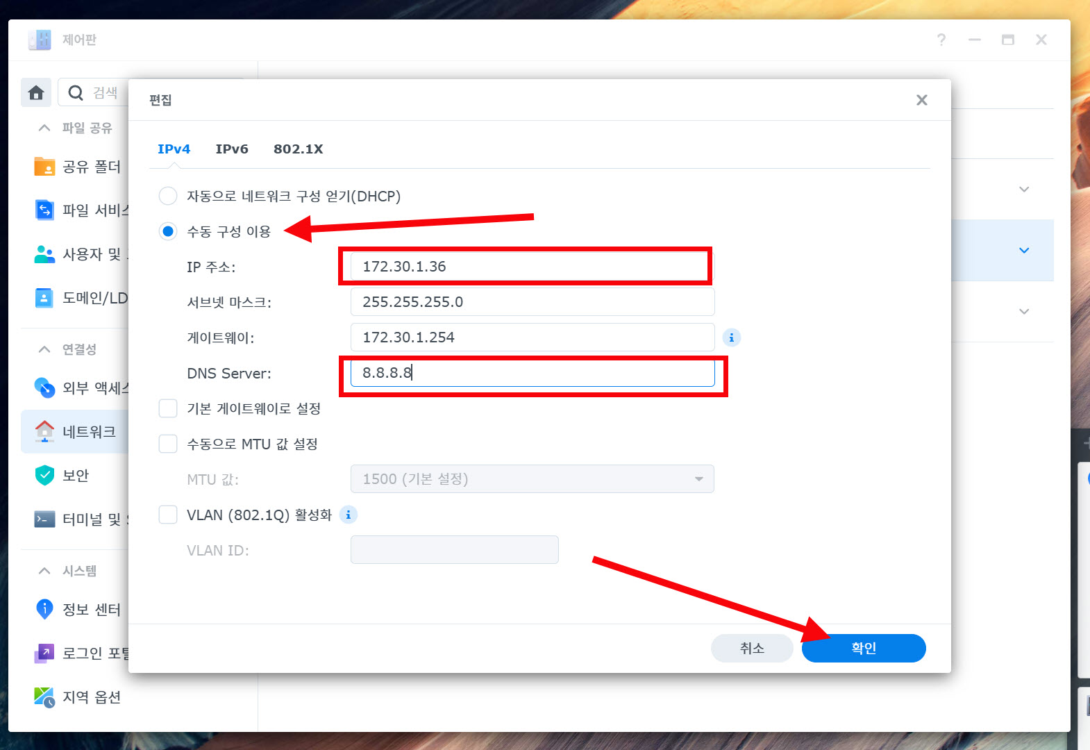 시놀로지 나스(Synology NAS) - 네트워크 설정하기(DSM 7.2)