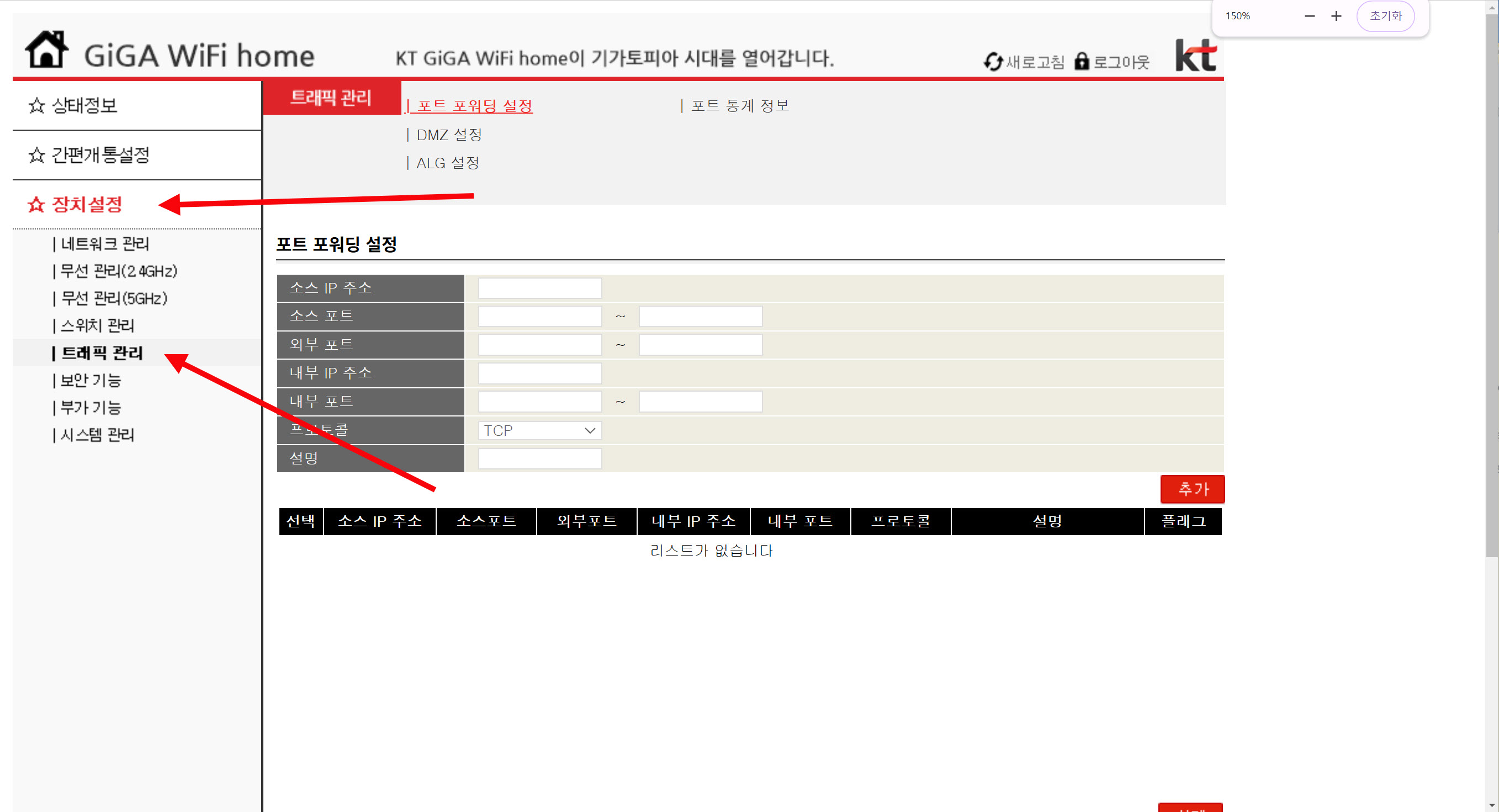 KT 기가 와이파이 홈 공유기를 사용하여 포트포워딩 설정하는 방법