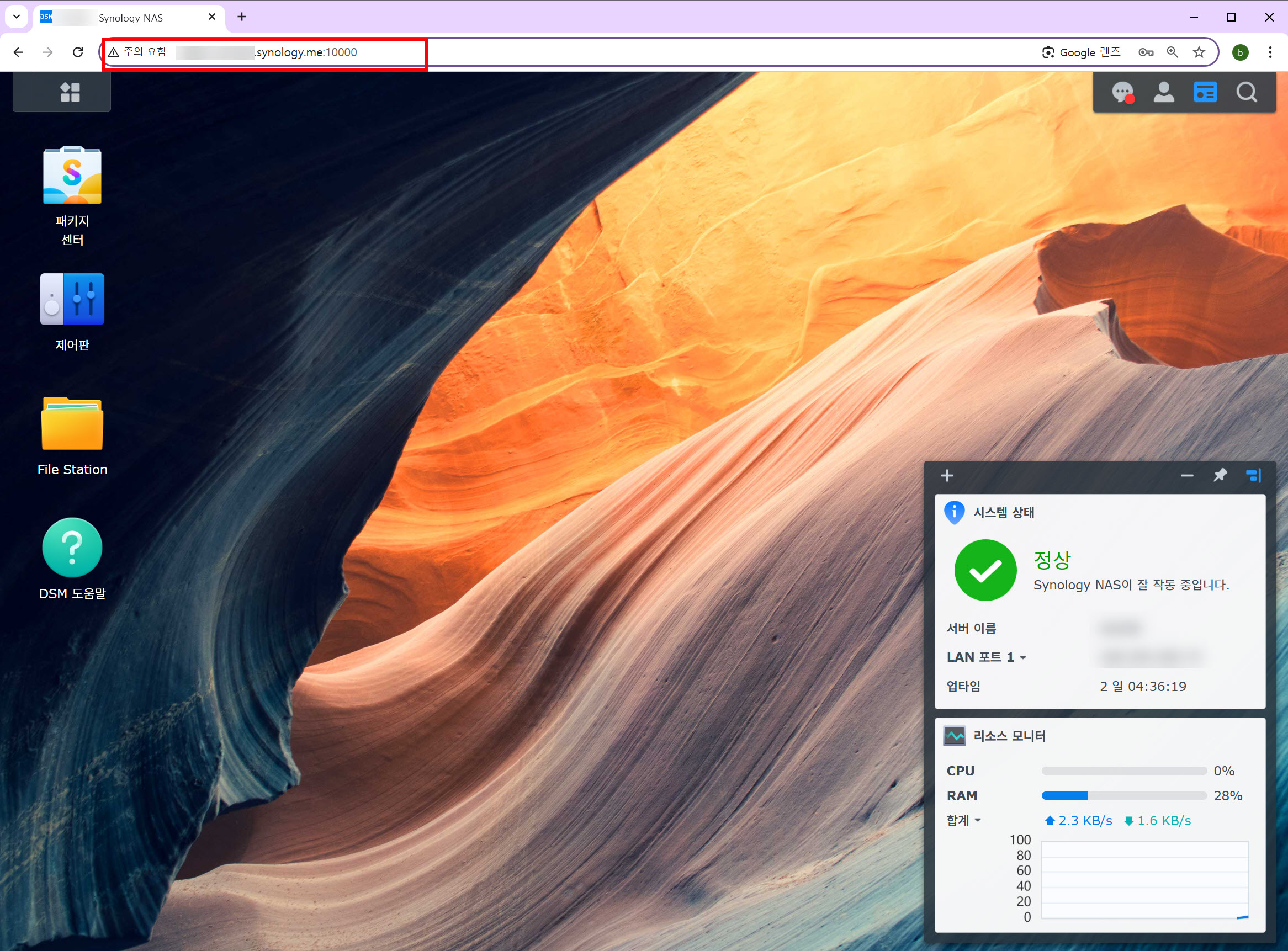 6)제어판의 로그인 포털에서 DSM 포털을 확인합니다.