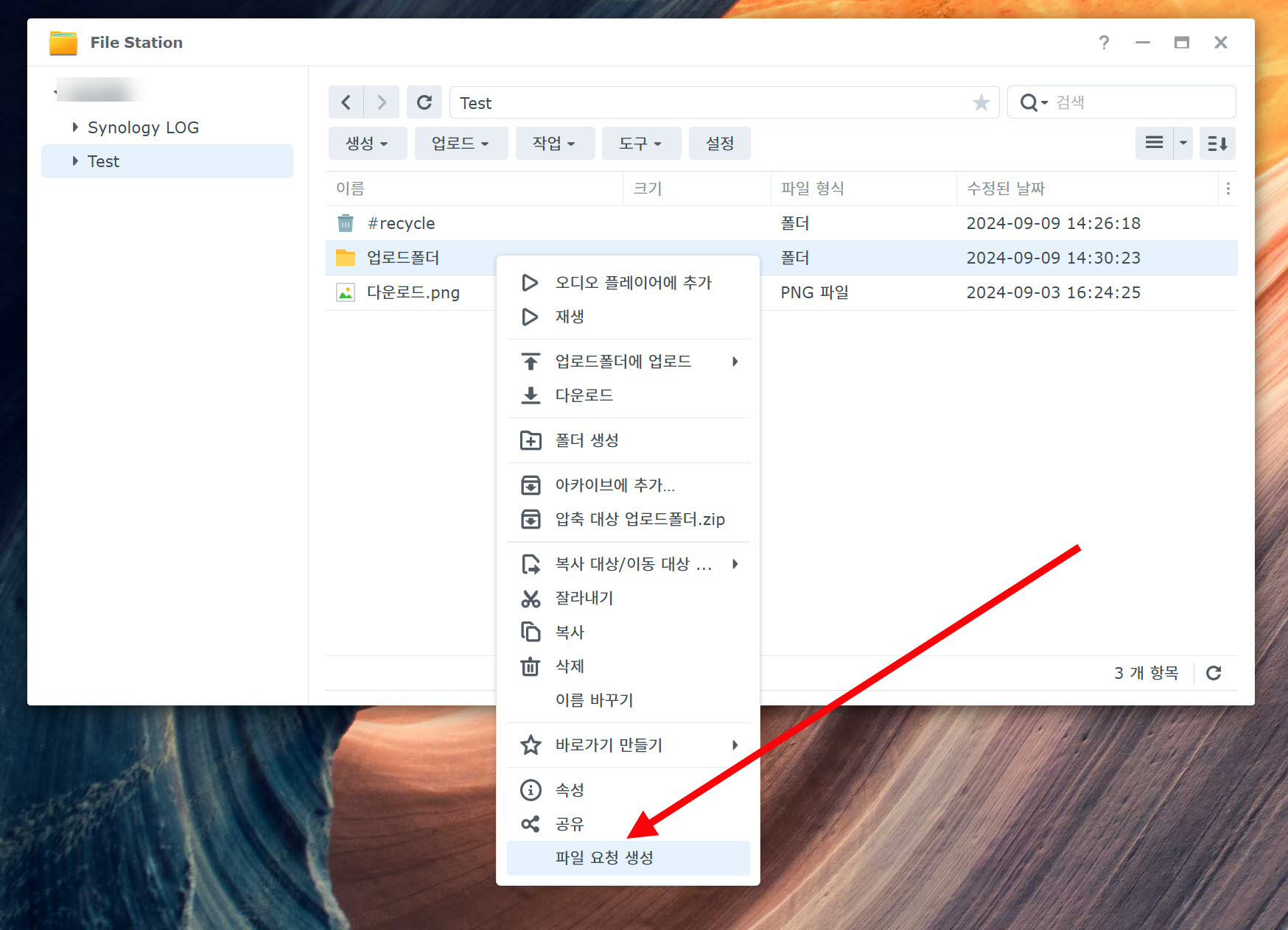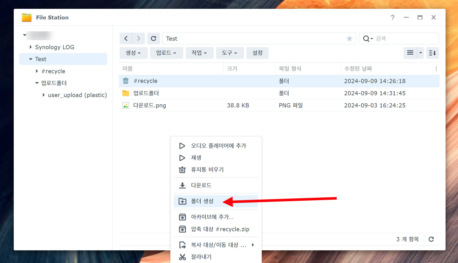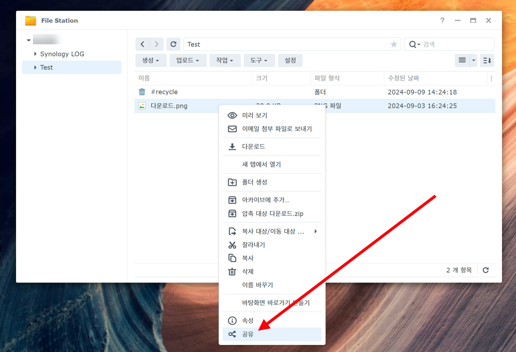 1)파일 스테이션(File Station)으로 이동합니다.
