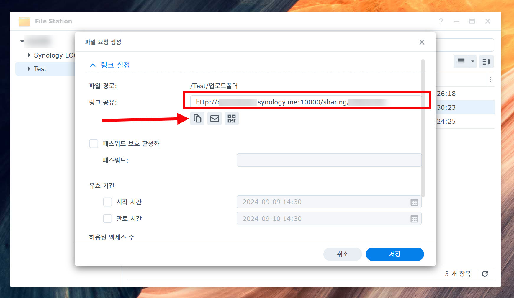 시놀로지 나스(Synology NAS) - 파일 다운로드 링크 공유 및 업로드 요청(DSM 7.2)