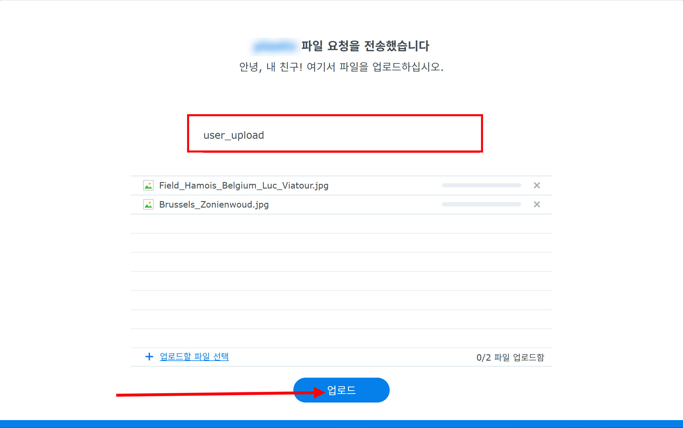 10)사용자는 공유 링크 주소에서 파일을 추가하고 업로드할수있습니다.