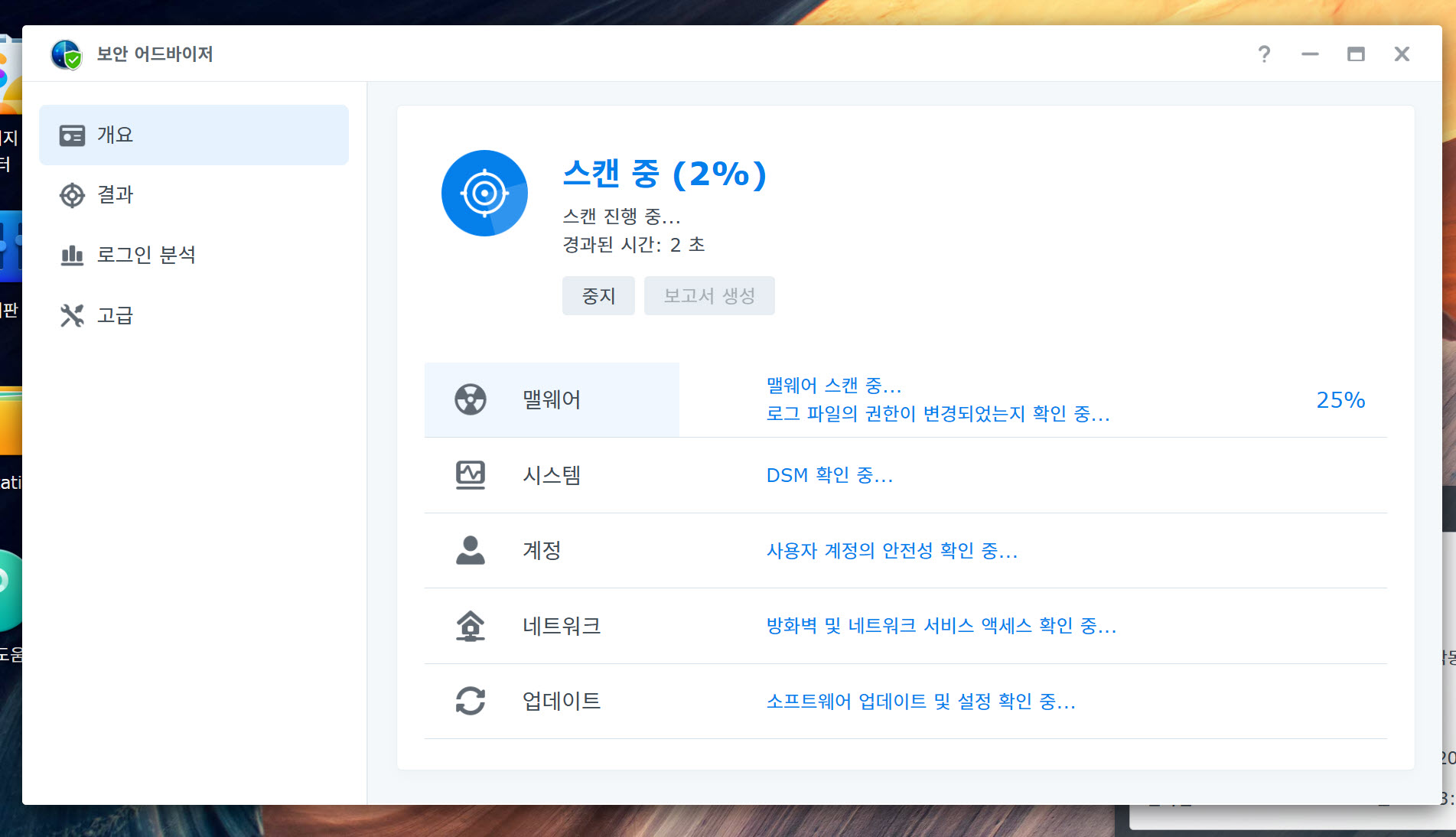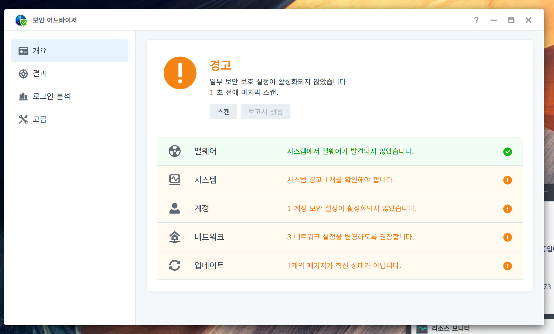 보안 어드바이저 시스템 검사