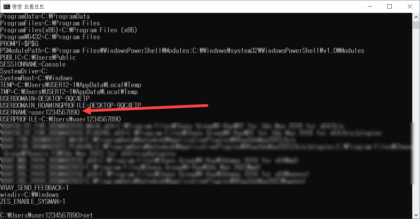 6)명령프롬프트에서 set을 입력합니다.