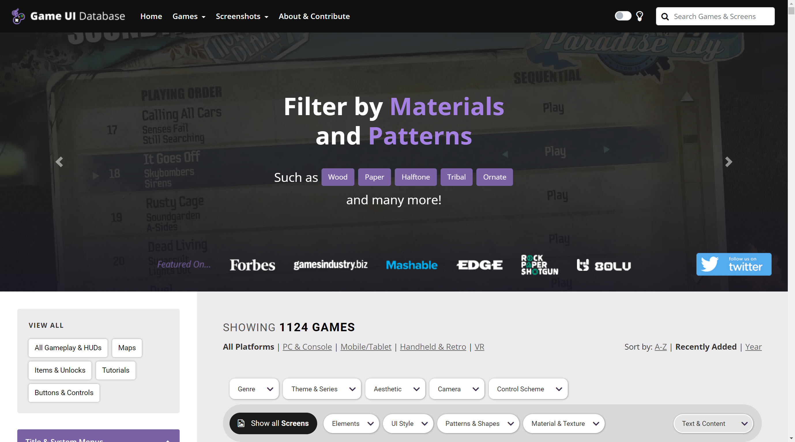 게임 산업의 UI/UX 디자인 리소스 및 참고 자료(스크린샷, 비디오 영상)를 검색할수있는 웹사이트입니다.