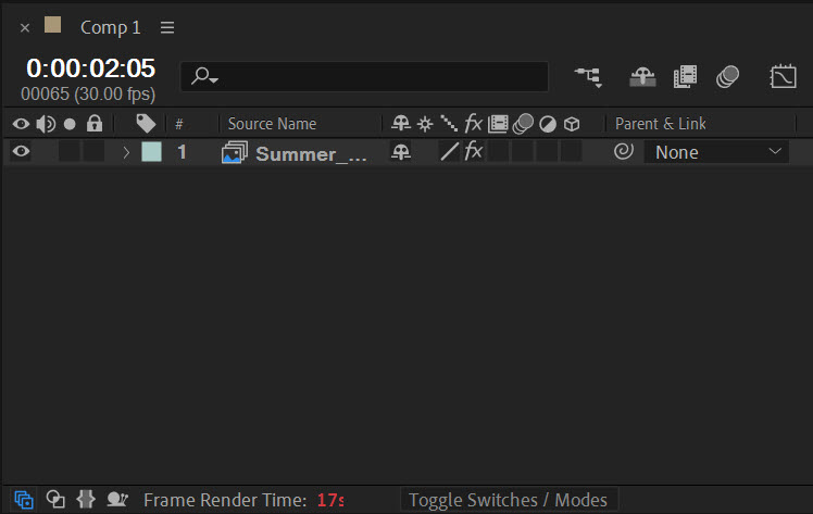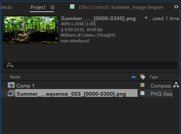 2)새로운 컴포지션을 생성하고 이미지 시퀀스를 푸티지로 추가합니다.