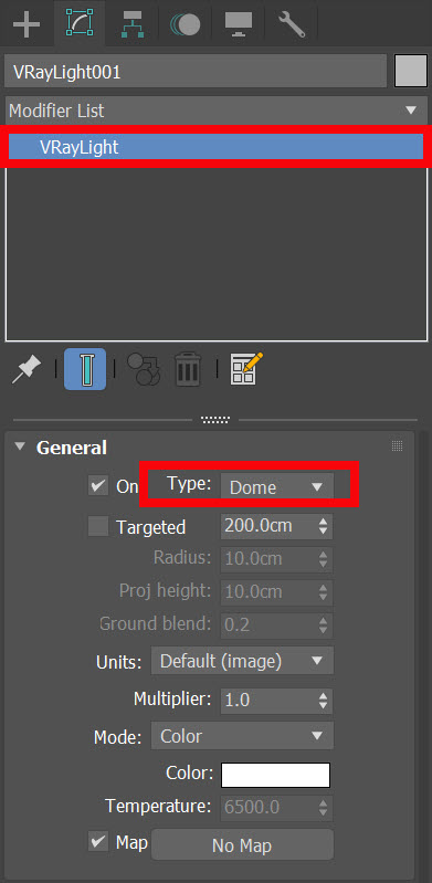 3)씬에 브이레이 조명을 추가합니다( Dome Light)