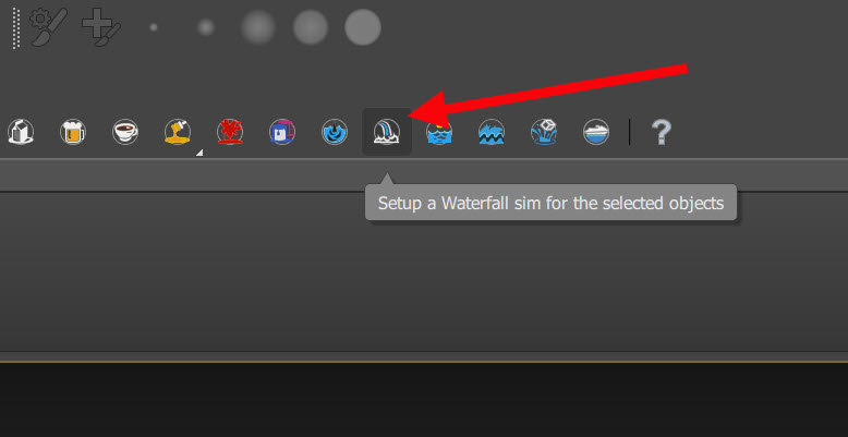 33)씬에 폴리곤 오브젝트를 생성하고 상단의 도구모음에서 waterfall 프리셋을 클릭합니다.