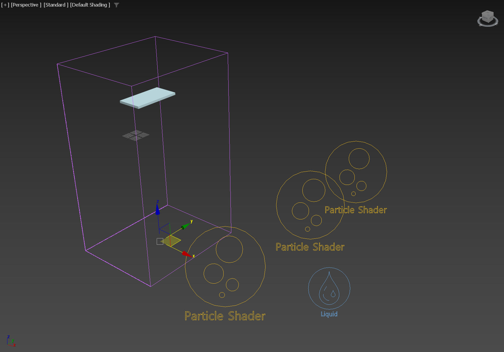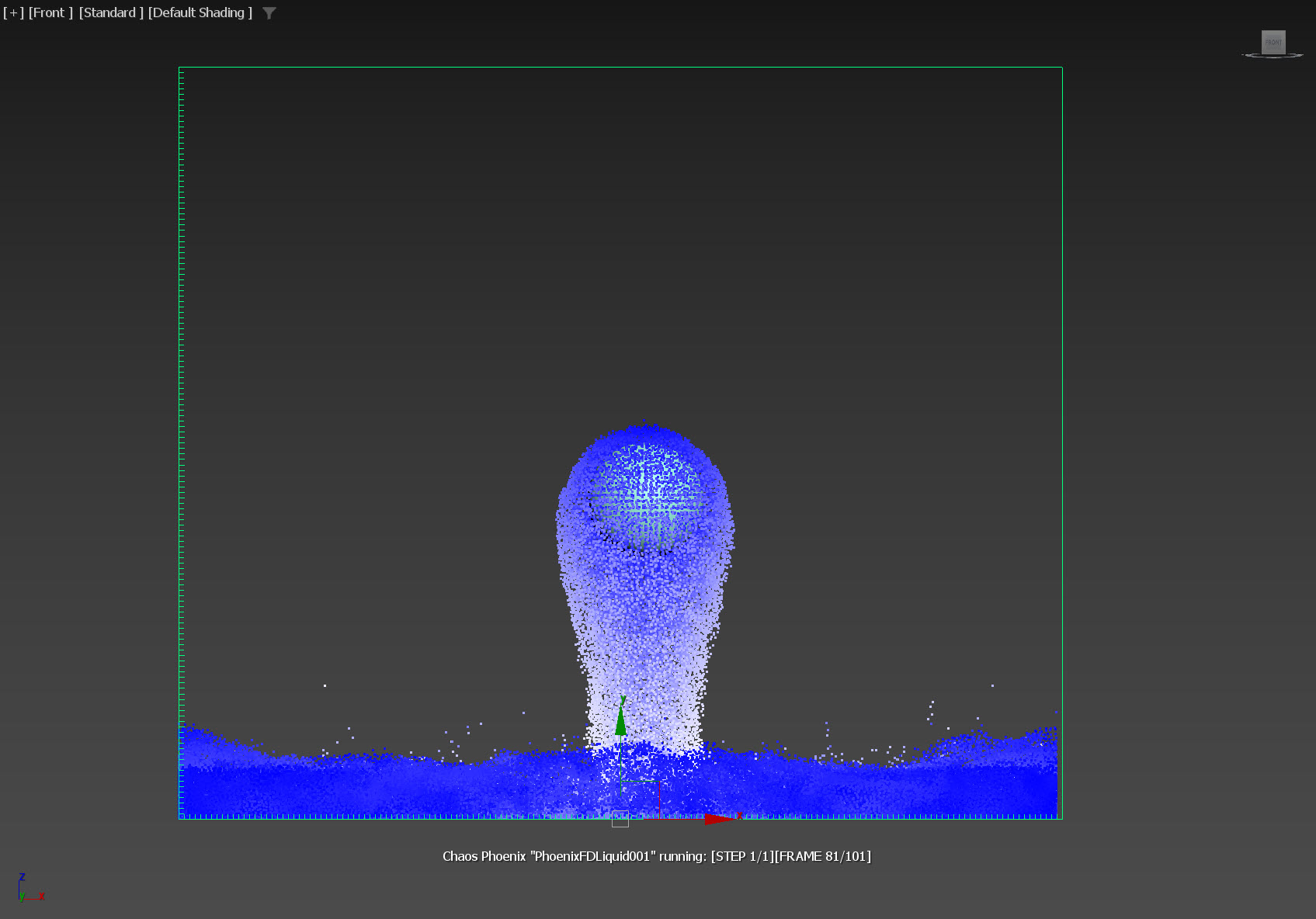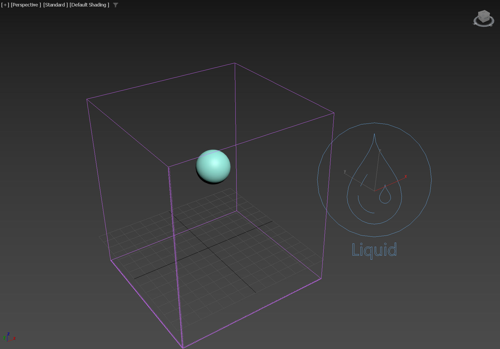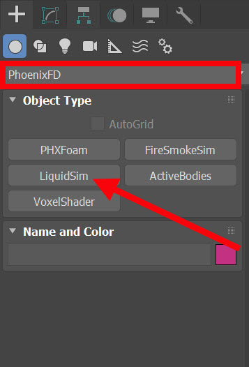 1)PhonixFD에서 LiquidSim을 선택하고 씬에 클릭, 드래그하여 시뮬레이터를 생성합니다.