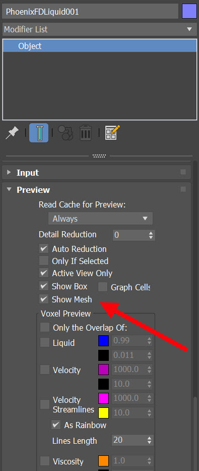 18)Object의 Preview에서 show mesh에 체크합니다.
