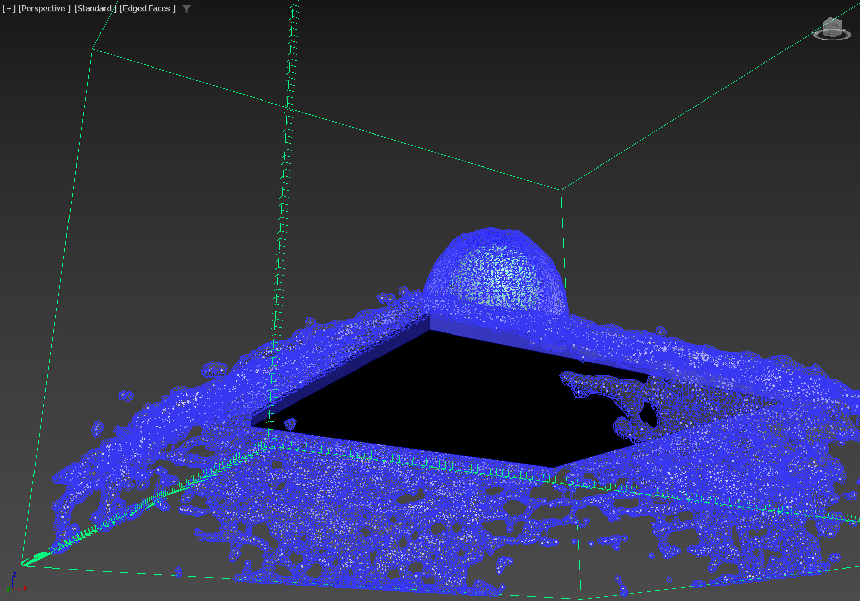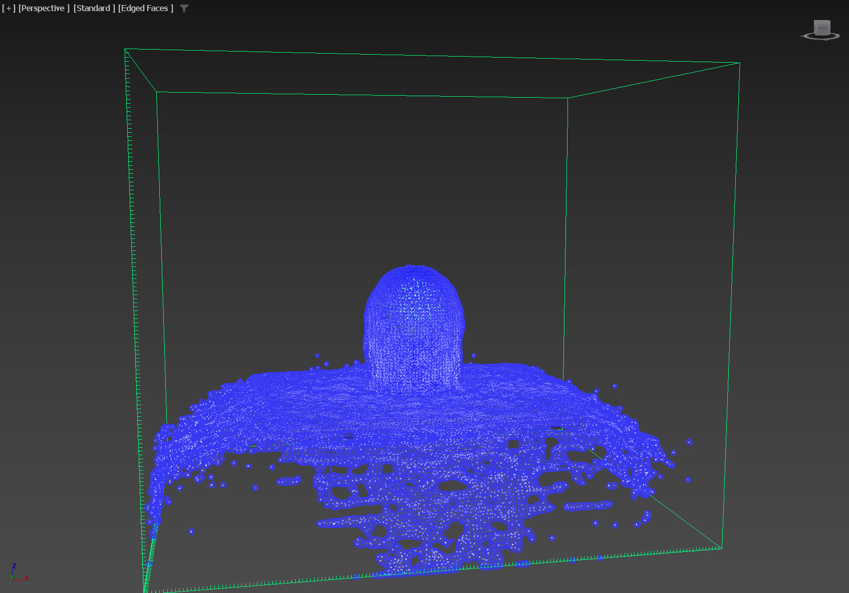 26)영역에 폴리곤 오브젝트를 생성하고(box) 시뮬레이션을 실행합니다.